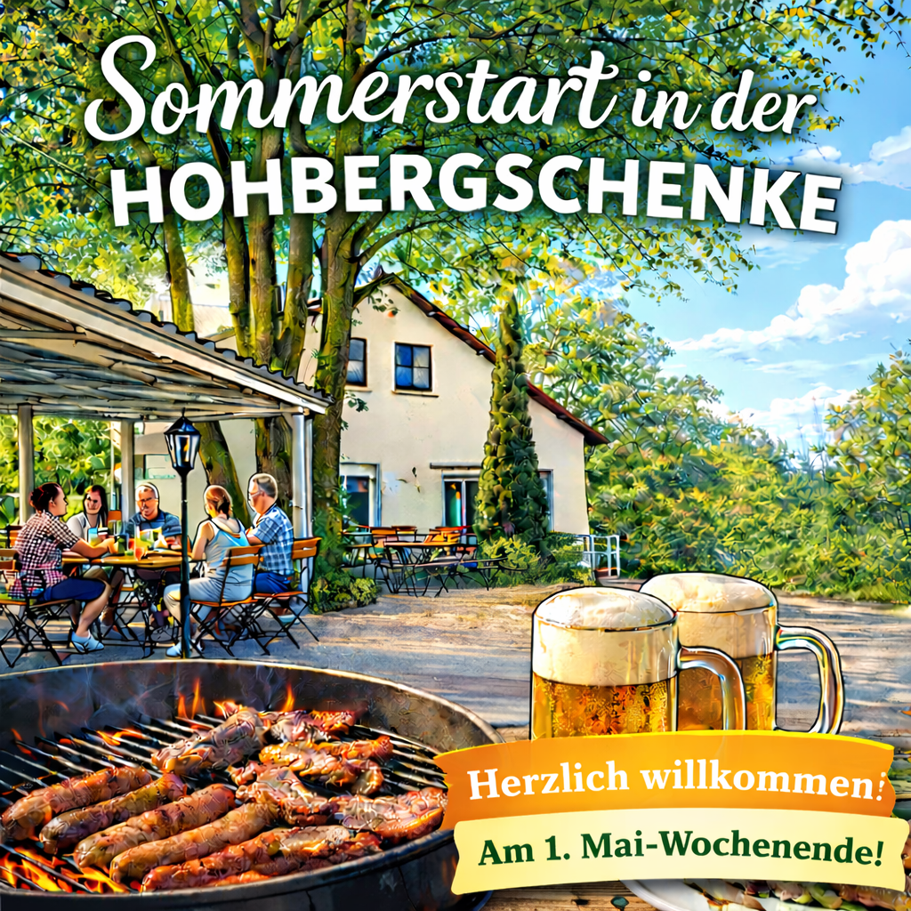Mitten im Grünen, umgeben von der idyllischen Natur des Hohbergs, erwartet Dich unsere gemütliche Hohbergschenke – ein Ort zum Ankommen, Genießen und Verweilen. Ob bei einer frisch gezapften Halbe, regionalen Spezialitäten oder einfach einer kleinen Auszeit im Schatten unserer Pergola: Hier bist Du immer herzlich willkommen.